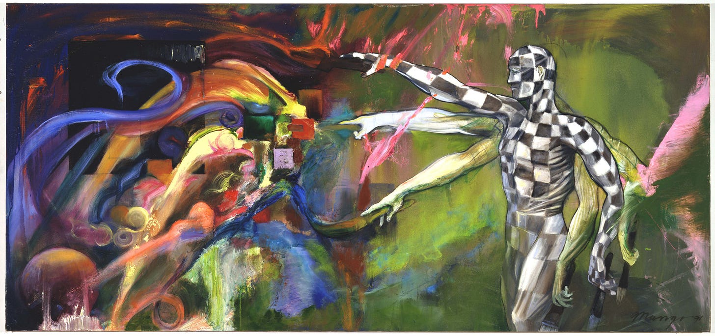 Having arrived in New York in 1977, Mango developed his own language in a profound dialogue with the city, both muse and mirror of an education in the roughest downtown, marked by crucial encounters—artists, musicians, intellectuals—and the fracture of September 11th, an experience that transformed destruction and memory into pictorial matter.